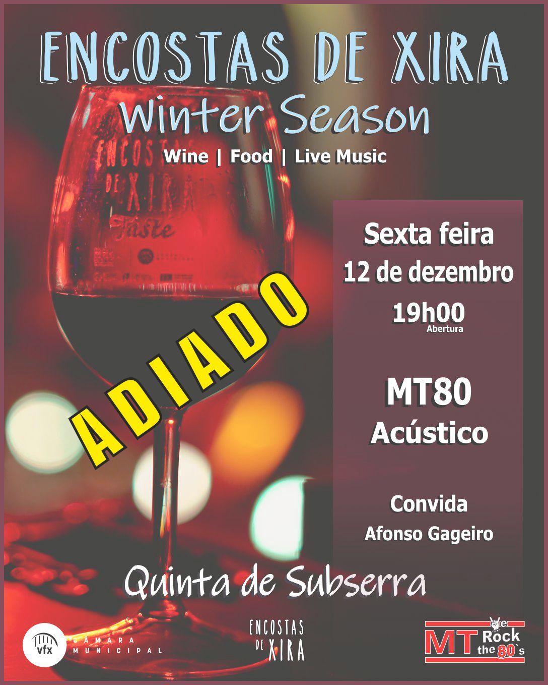 [ADIADO] Vinhos, petiscos e música ao vivo - “Encostas de Xira - Winter Season”