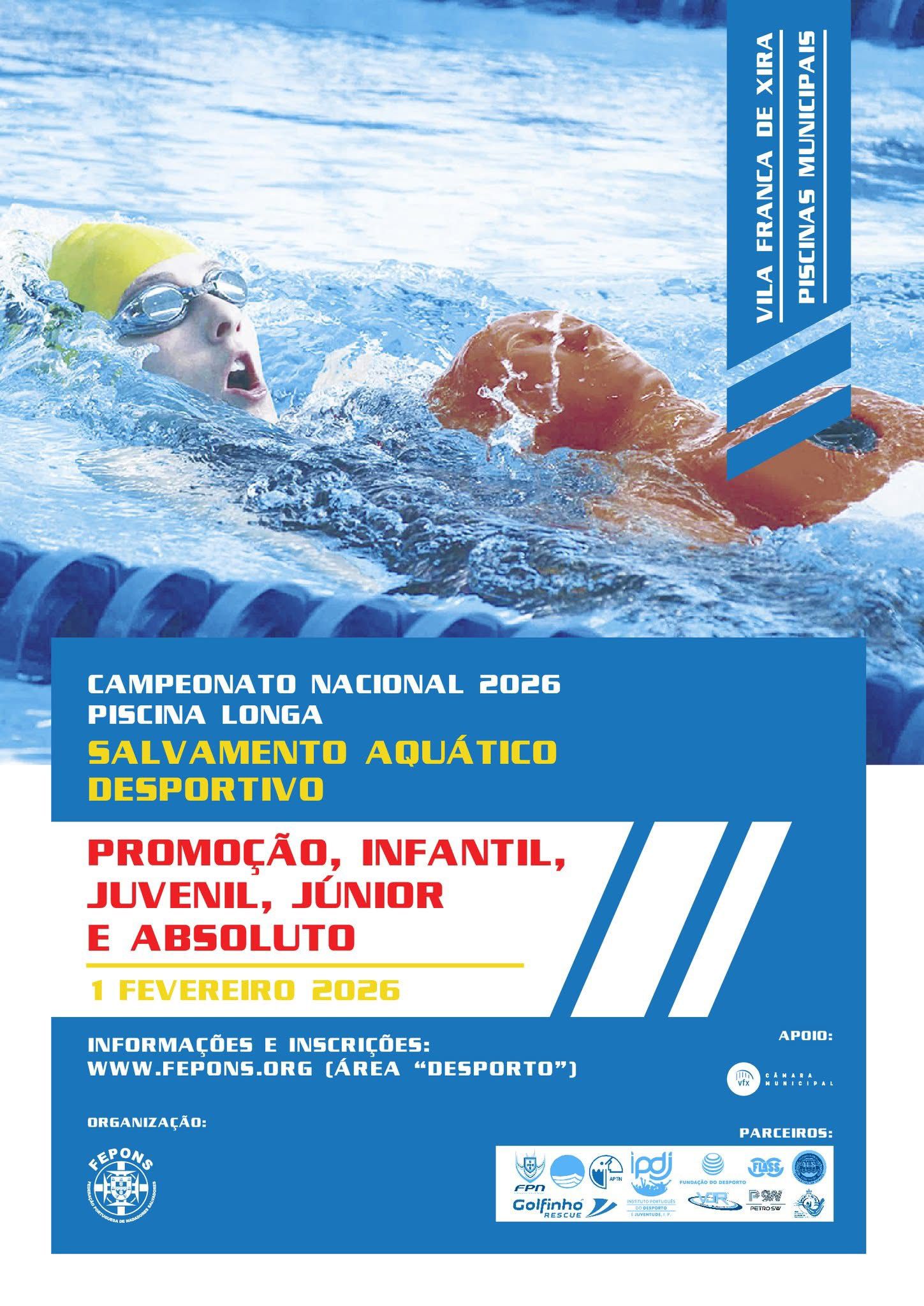 A prova tem lugar no dia 1 de fevereiro´26, pelas 10h00, na Piscina Municipal de Vila Franca de Xira e afirma-se como um dos momentos mais relevantes do calendário desportivo nacional desta modalidade que alia competição, formação e prevenção do afogamento.